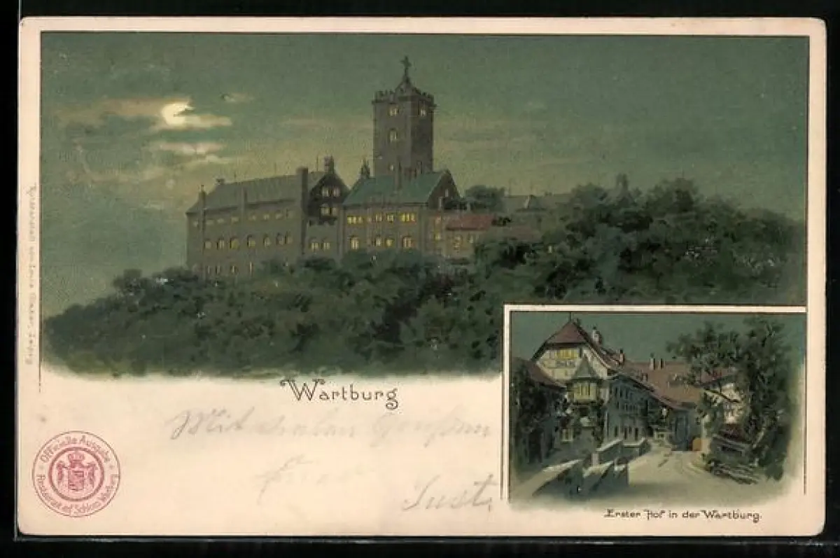 Lithographie Wartburg, Erster Hof in der Wartburg
