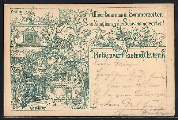 Lithographie Weetzen, Gasthaus Bettenser Garten mit Pavillon