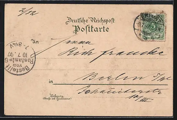 gelaufen 1897, Eckknicke li. oben, Oberflächenschaden re. mittig, guter Zustand