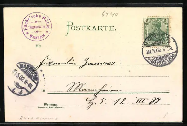 Lithographie Weinheim, Gasthaus Fuchs`sche Mühle, Burg Windeck bei Mondschein, Hildebrandt`sche Kunstmühle