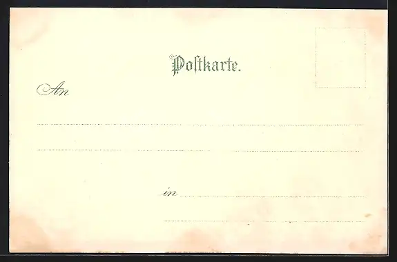 Personenbezogene Daten auf der Rückseite der Karte wurden durch blauen Textmarker unkenntlich gemacht. Die blauen Stellen sind auf die Vorderseite durchgeweicht und wirken sich negativ auf das Postkartenfoto aus