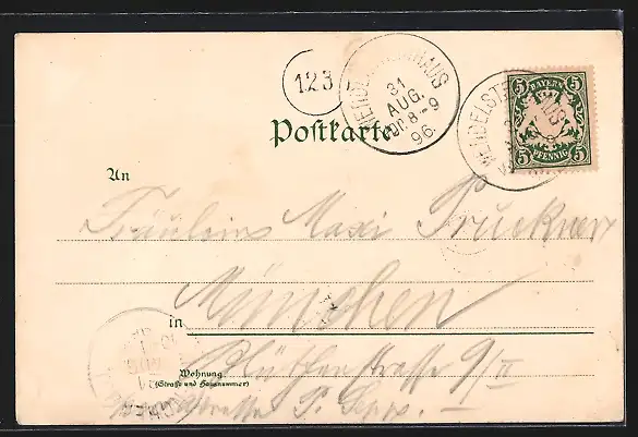 gelaufen 1896, Eckknick re. unten, guter Zustand