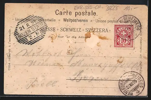 gelaufen 1896, Eckknicke unten, guter Zustand