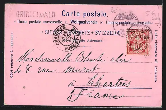 gelaufen 1897, Eckknicke re. oben, guter Zustand