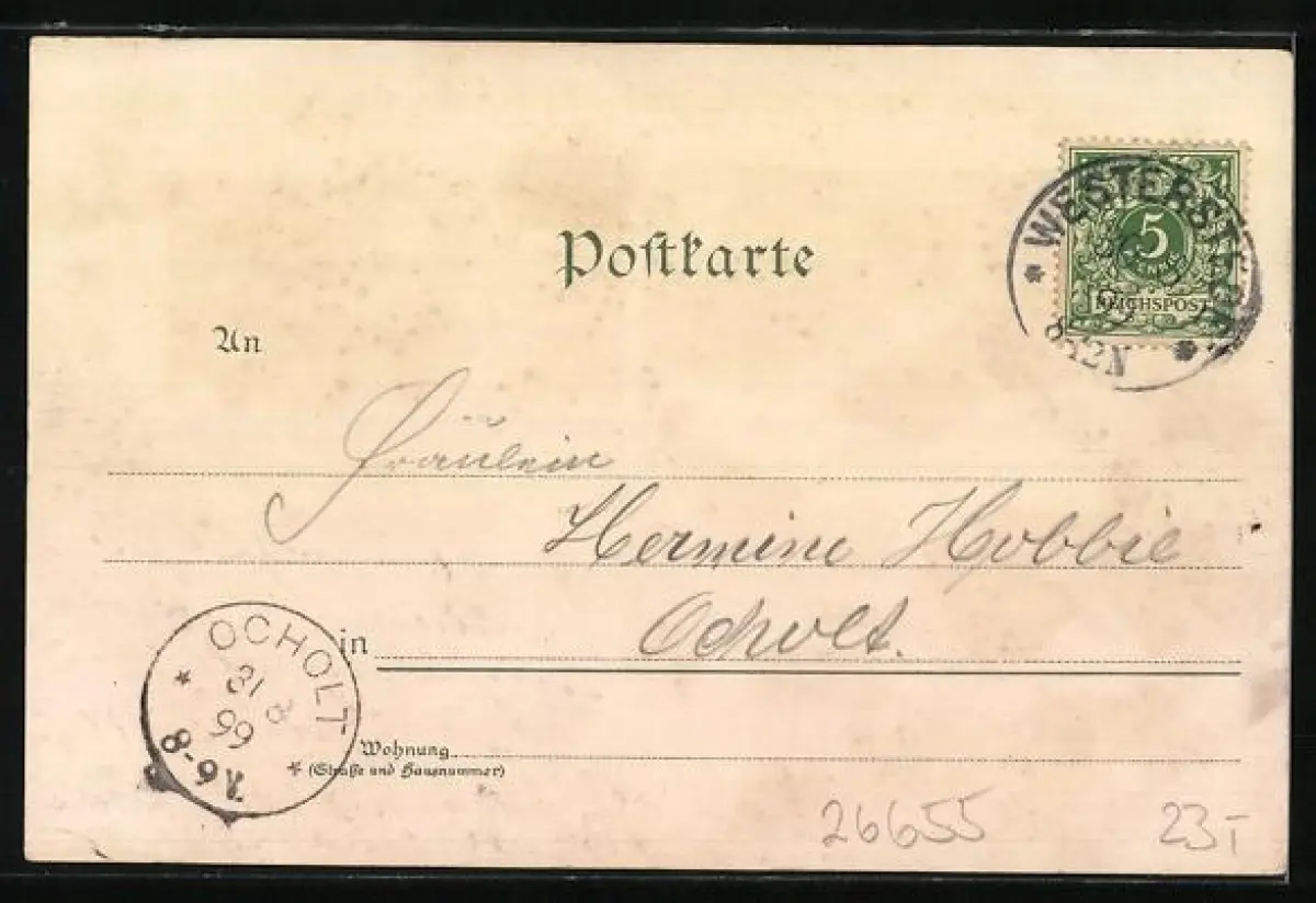 Lithographie Westerstede, Secundär-Bahn, Peterstrasse, Teilansichten