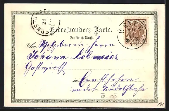 gelaufen 1896, Eckknicke li. oben und re. unten, guter Zustand