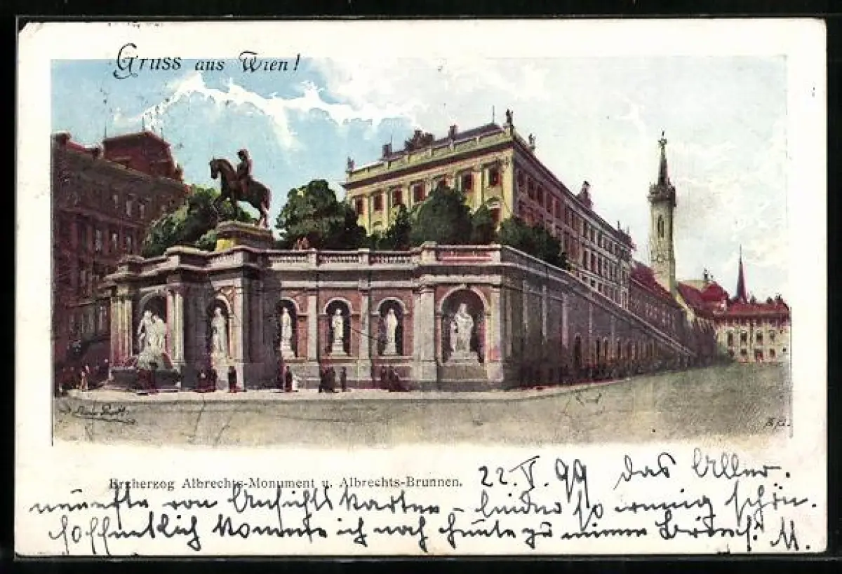 Lithographie Wien, Albrechtsplatz, Albrechtsbrunnen