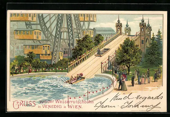 Lithographie Wien, Ausstellung Venedig in Wien, Wasserrutschbahn und Riesenrad