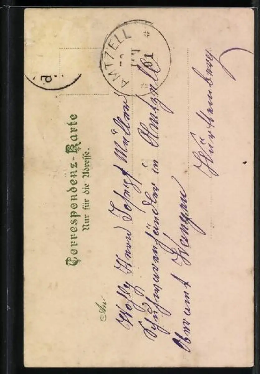 gelaufen 1901, Briefmarke entfernt, rückseitig Oberflächenschaden, Stempelspur, guter Zustand