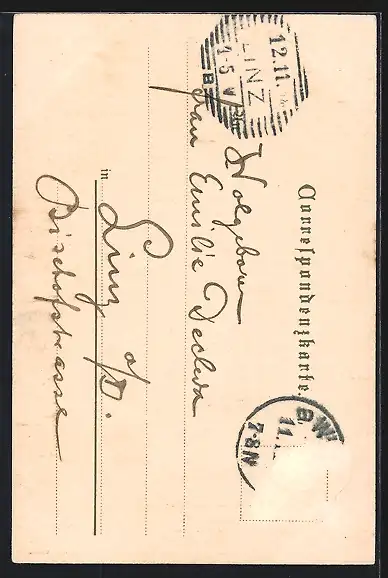gelaufen, Briefmarke entfernt, rückseitig Oberflächenschaden, Bugspur li. unten, guter Zustand