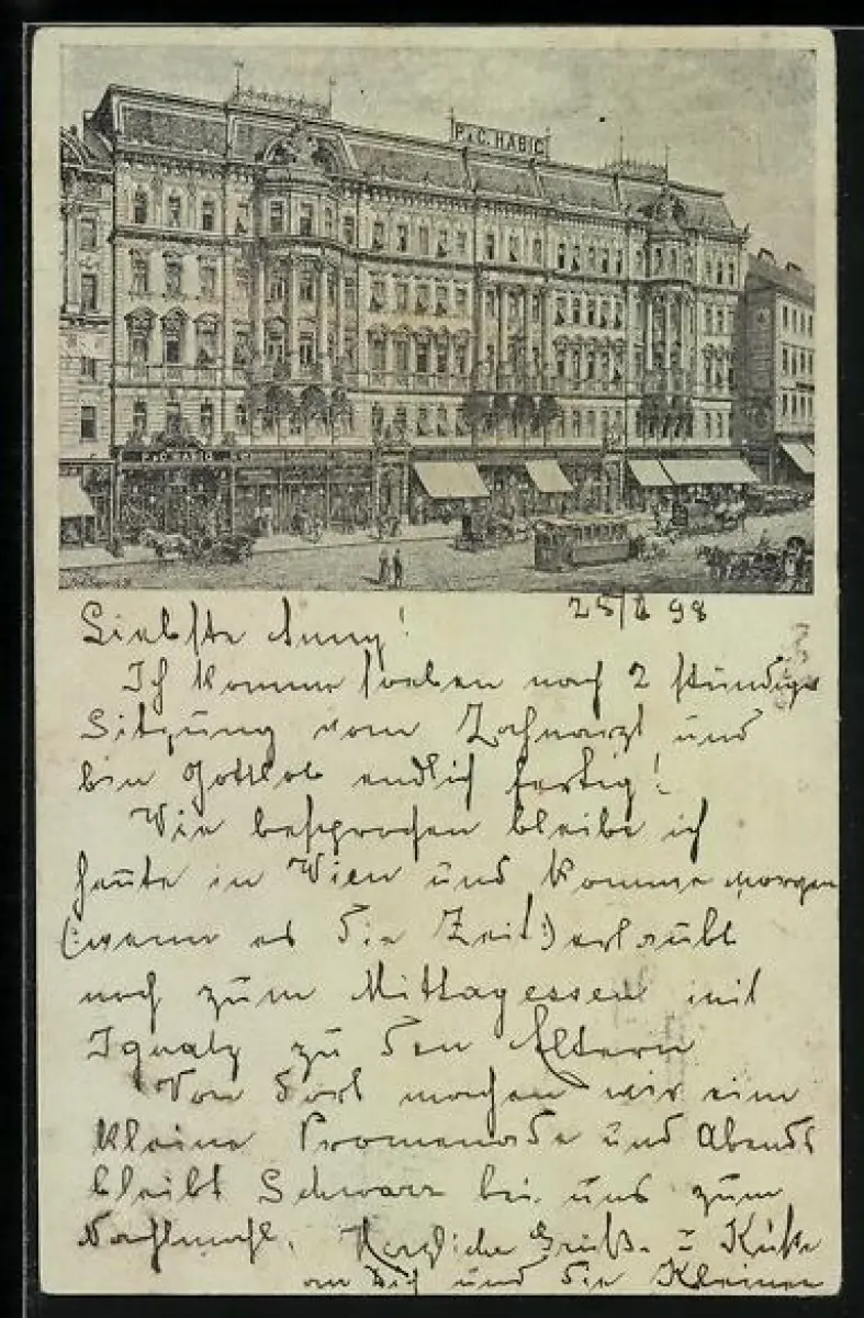 Lithographie Wien, Hutfabrikant Habig, Wiedner Hauptstrasse 15–17