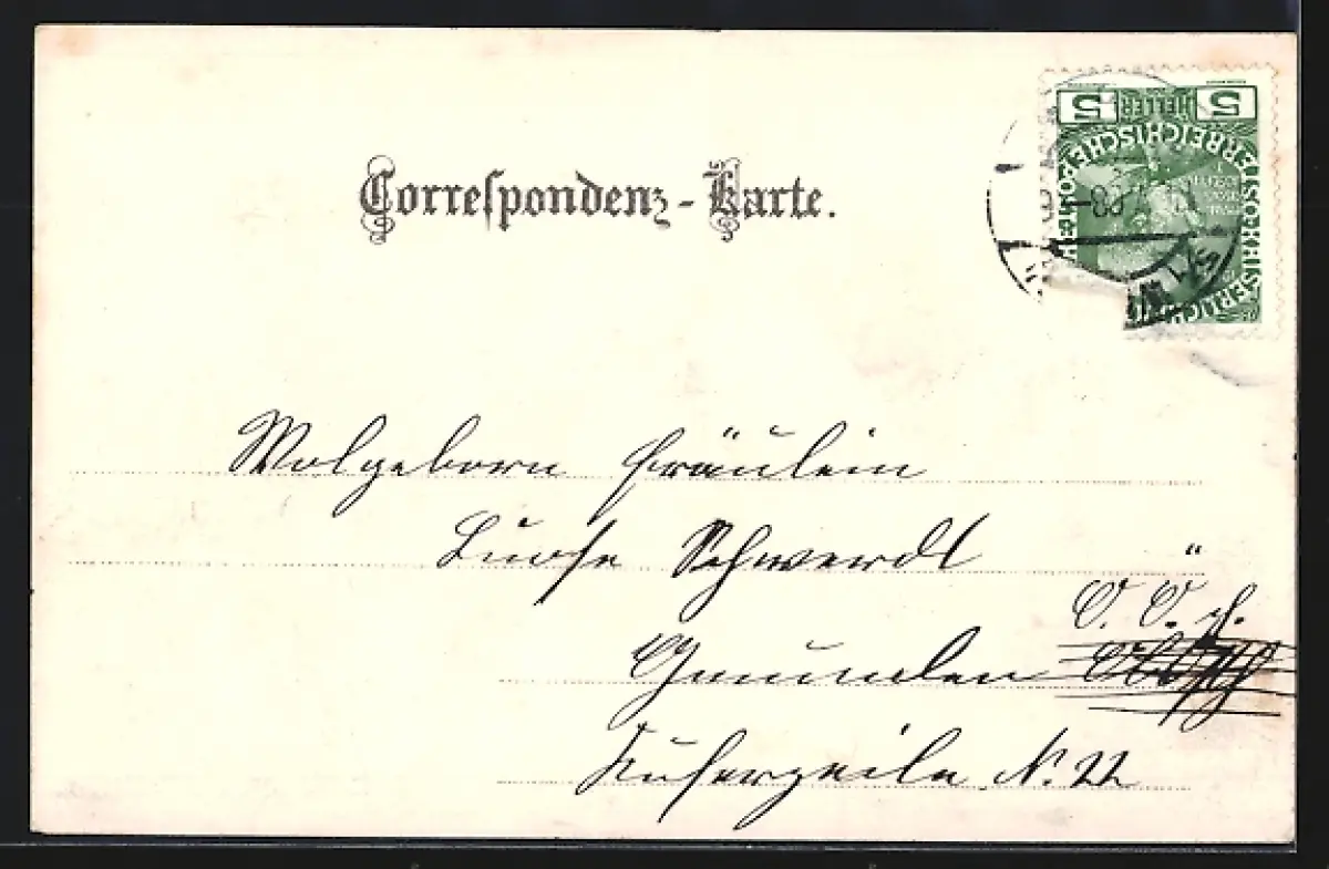 gelaufen 1908, Briefmarke entfernt, guter Zustand