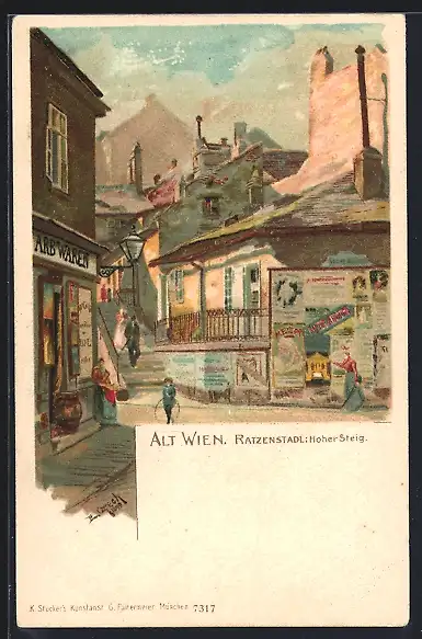 Lithographie Wien, Ratzenstadl, Hoher Steig