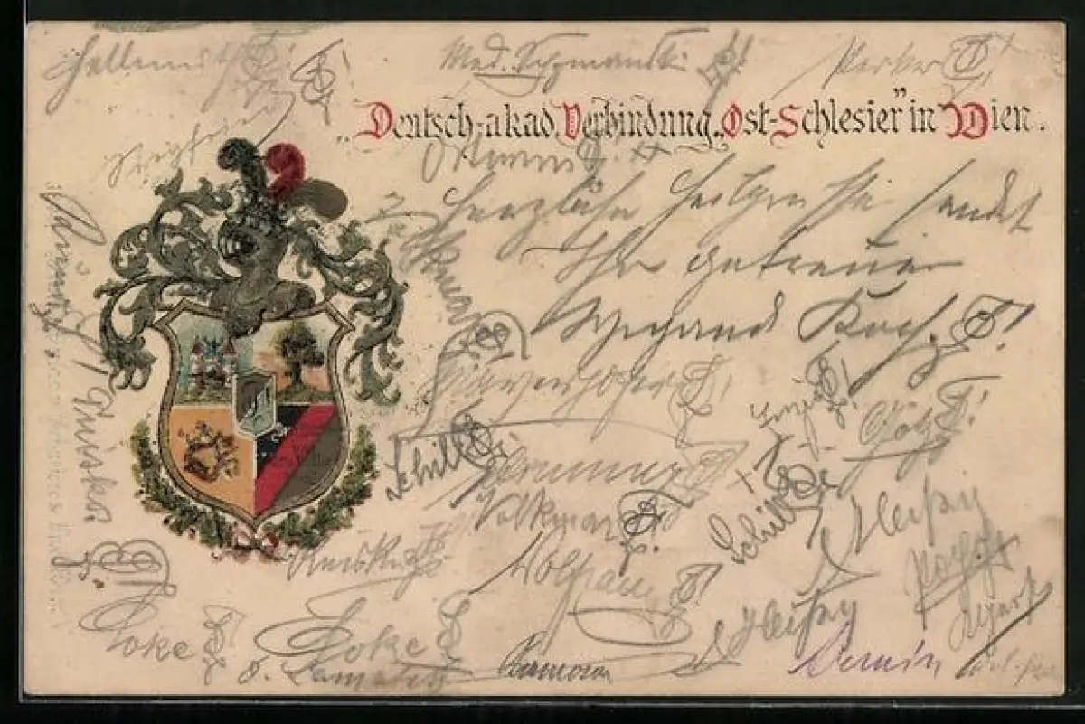 Lithographie Wien, Studentenwappen der Deutsch-akad. Verbindung Ost-Schlesien