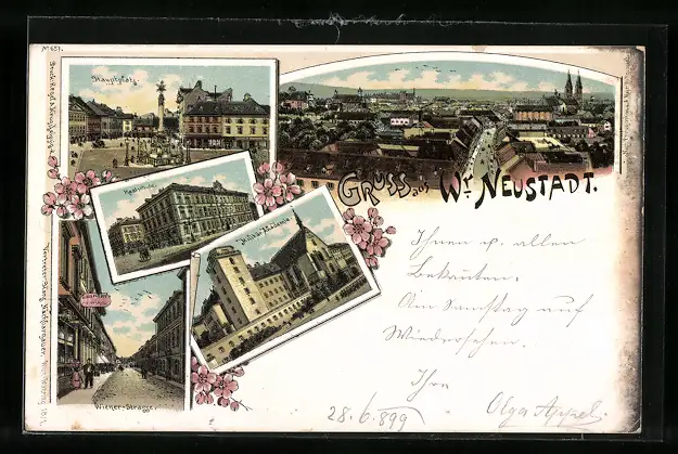 Lithographie Wiener Neustadt, Militärakademie, Realschule, Wiener Strasse