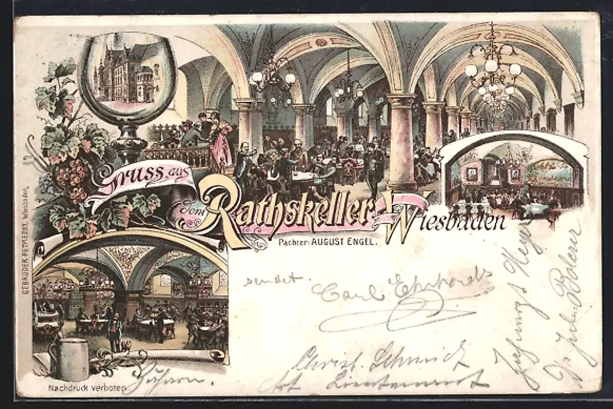 Lithographie Wiesbaden, Gasthaus zum Rathskeller, Innenansichten