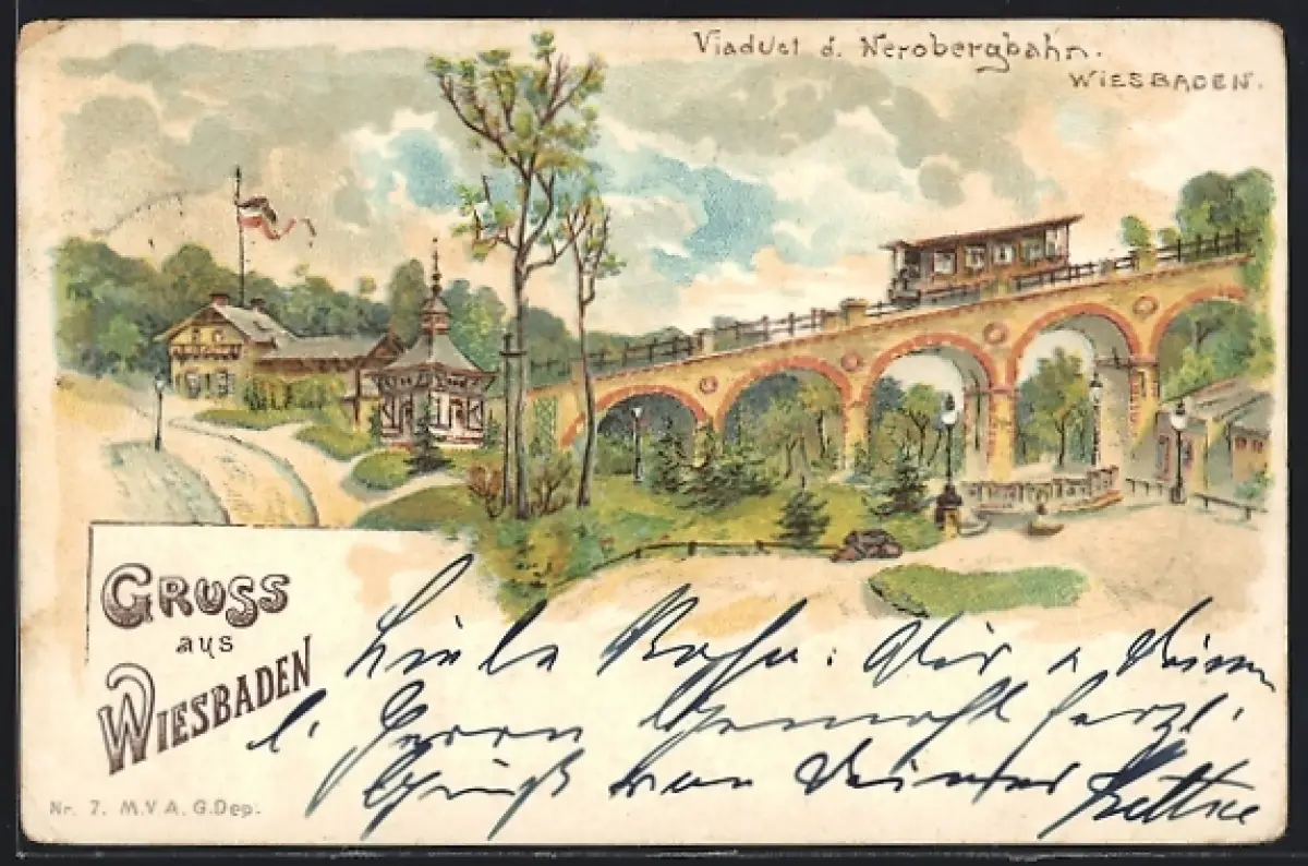 Lithographie Wiesbaden, Viaduct der Nerobergbahn