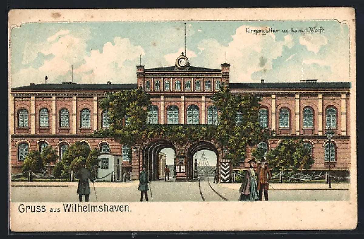 Lithographie Wilhelmshaven, Eingansthor zur kaiserl. Werft