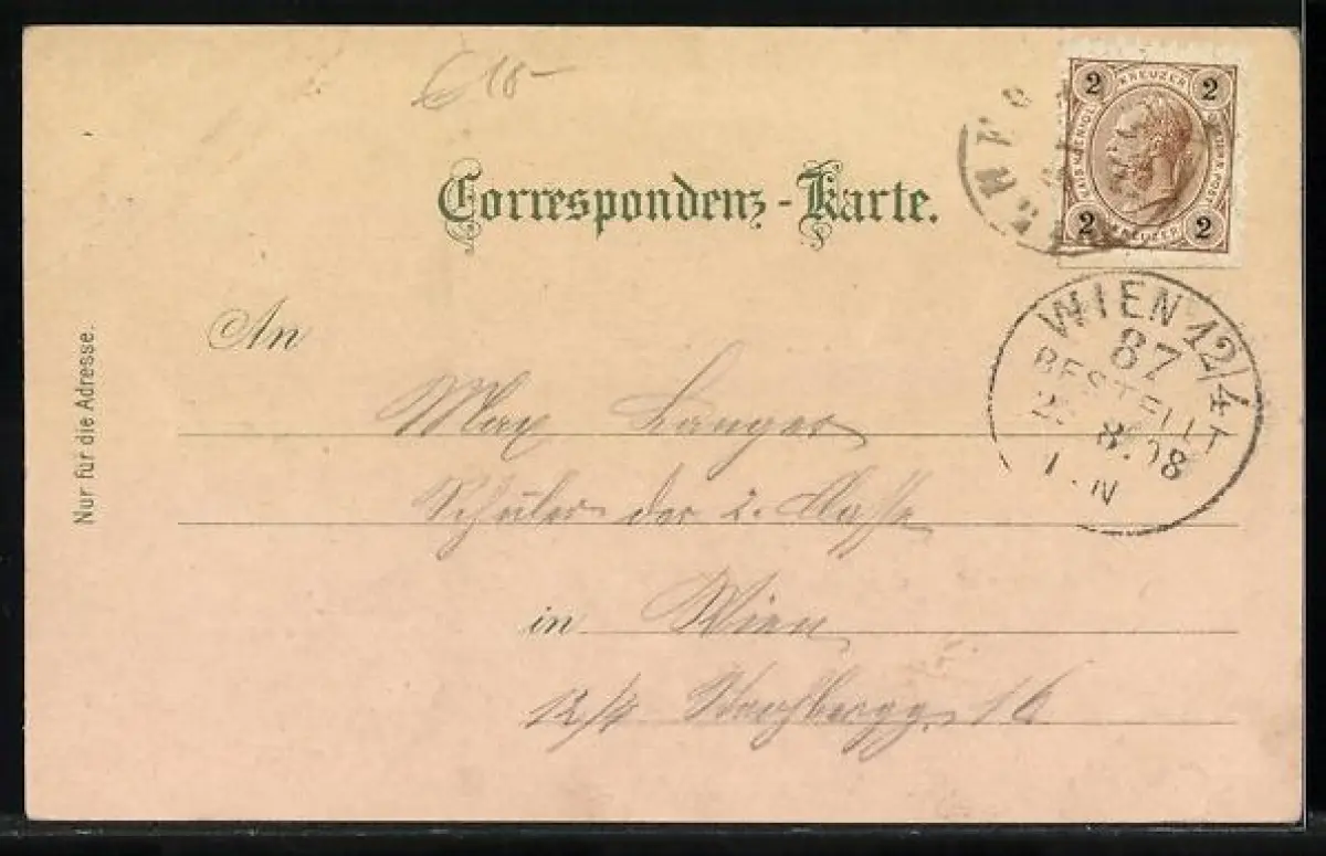 gelaufen 1898, Eckknick li. unten und re. oben, guter Zustand