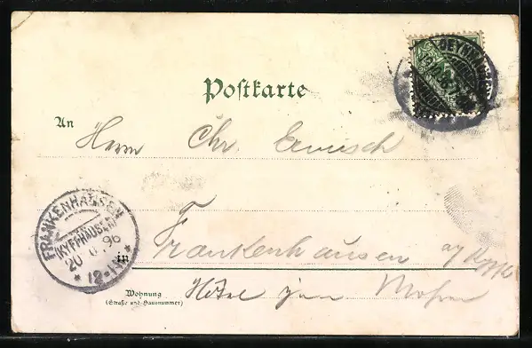 gelaufen 1896, Eckknick re. oben, minimale Einrisse li. oben u. re. mittig, guter Zustand