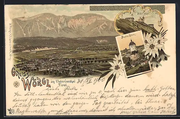 Lithographie Wörgl im Unterinnthal, Hohe Salve, Maria Stein, Panorama