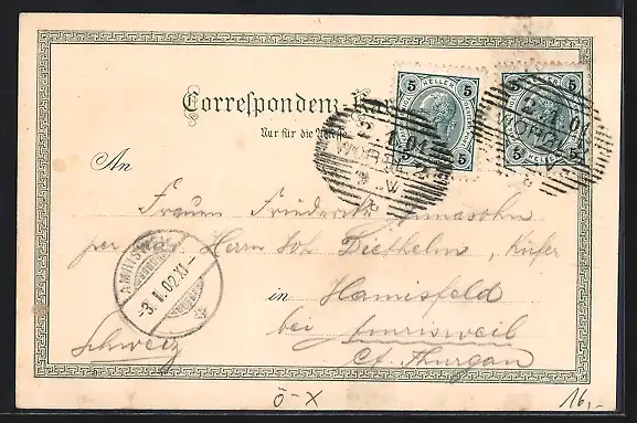 Personenbezogene Daten auf der Rückseite der Karte wurden durch blauen Textmarker unkenntlich gemacht. Die blauen Stellen sind auf die Vorderseite durchgeweicht und wirken sich negativ auf das Postkartenfoto aus