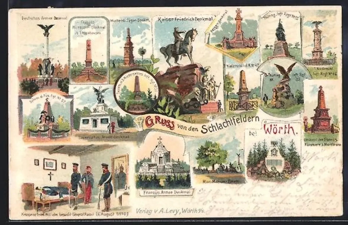 Lithographie Wörth, Denkmal des 2. hessischen Infanterie-Regiments Nr. 82