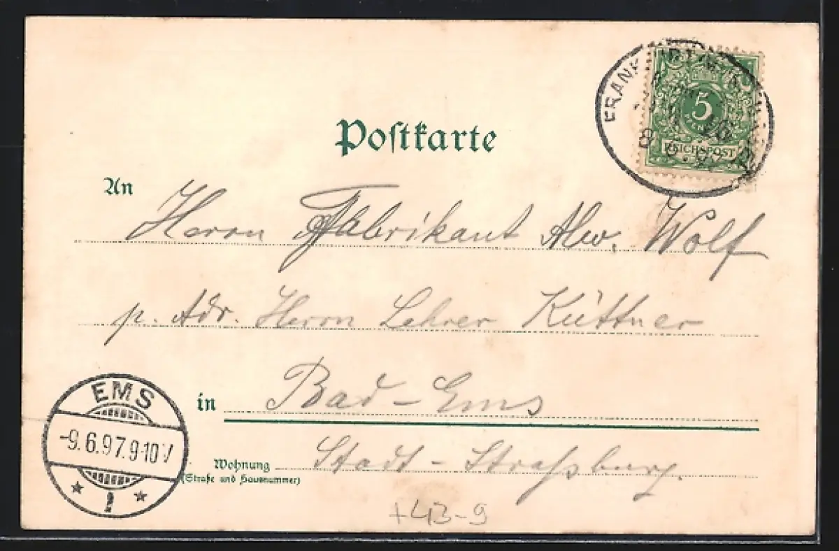 gelaufen 1897, Eckknick oben li., guter Zustand