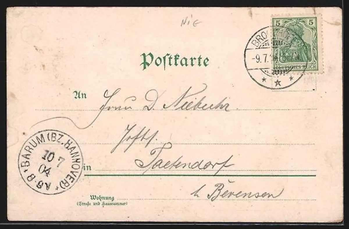 gelaufen 1904, Eckknick li. oben, kl. Einriss li. oben, guter Zustand