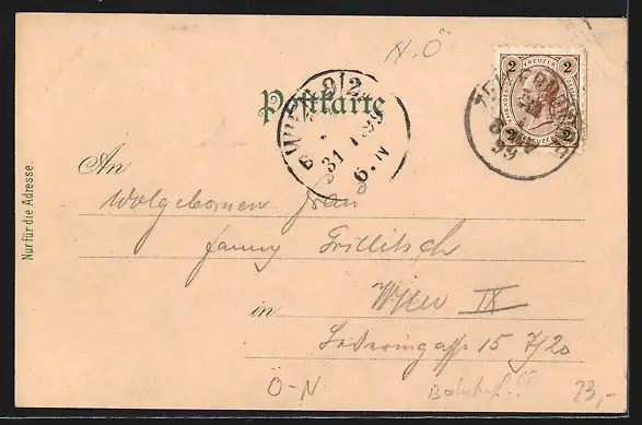 gelaufen 1899, Eckknick li. oben, guter Zustand