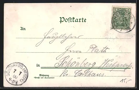 gelaufen 1900, Eckknick re. unten, guter Zustand