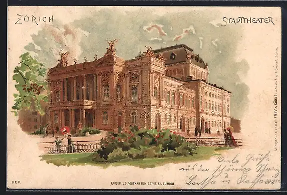 Lithographie Zürich, Stadttheater mit Flaneuren