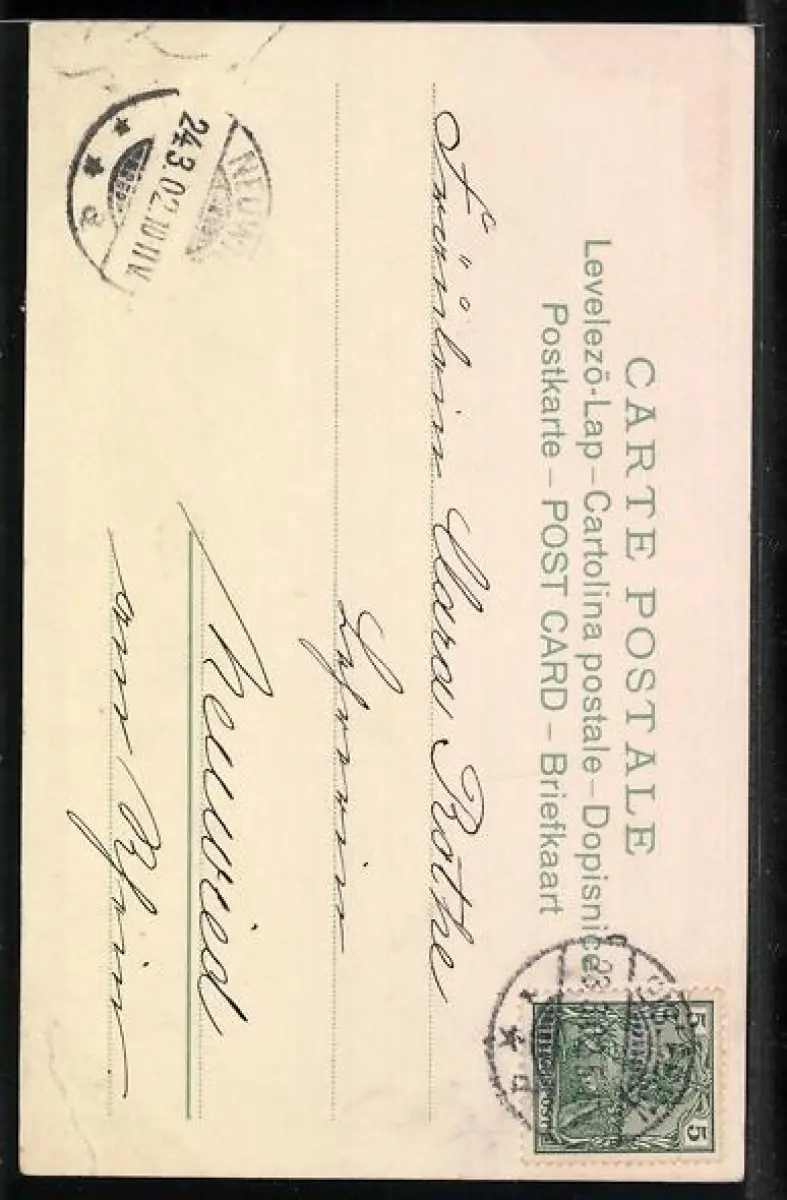 gelaufen 1902, Eckknick re. unten, guter Zustand
