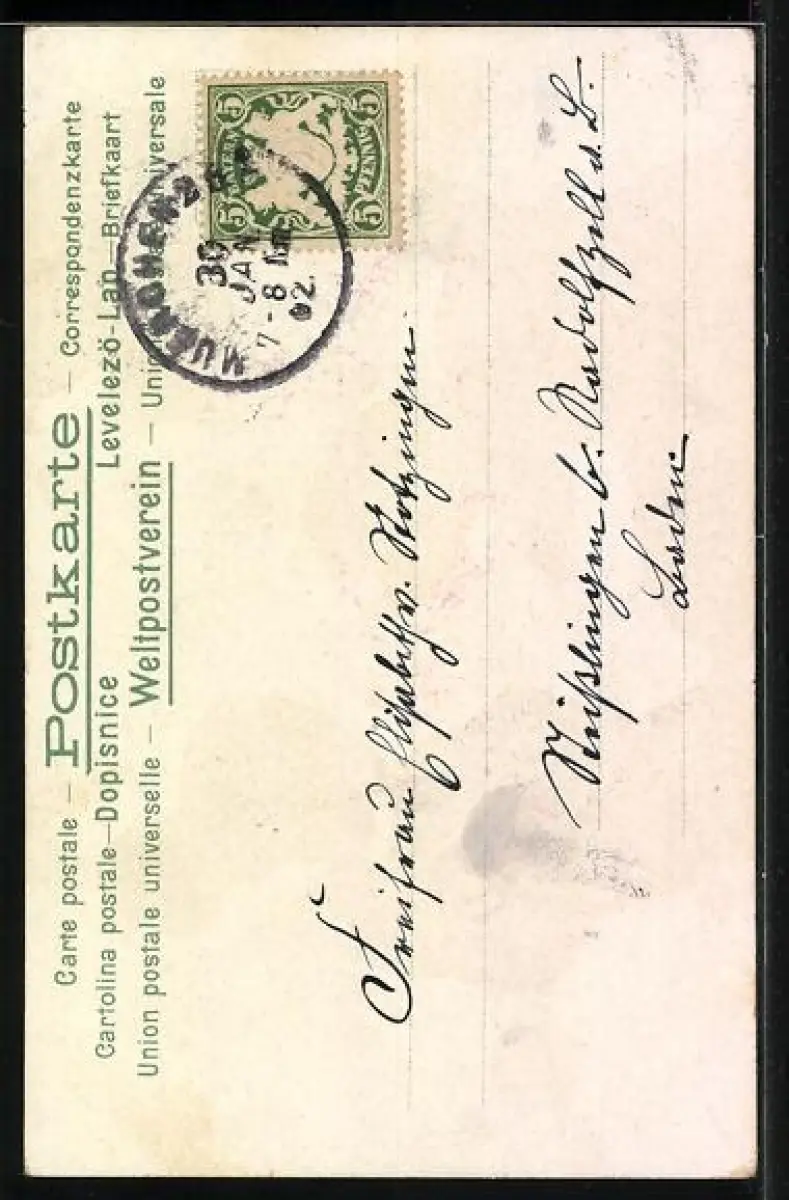 gelaufen 1902, Klebe- und Papierreste oben Mitte u. Mitte, Stempelspur, guter Zustand