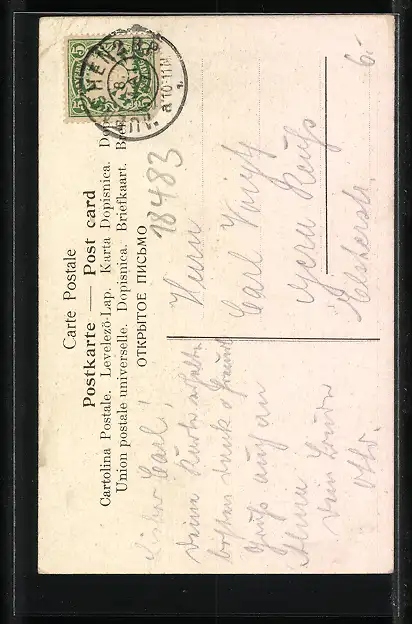 gelaufen 1907, Eckknicke li. unten und re. oben, Einriss unten mittig, guter Zustand