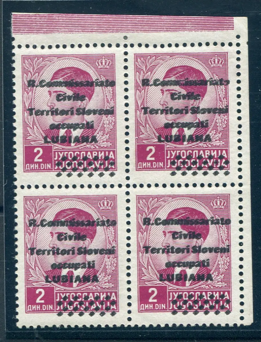 Ljubljana - R. Commissariato 2 d. Doppelaufdruck Vollgummi - Ljubljana - R. Commissariato 2 d. rosa lila Nr. 22b Viertel a. von f. mit Doppelaufdruck - Kat. 200 Code 835/11