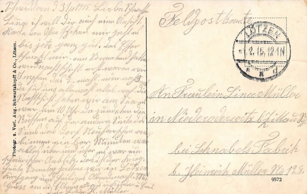 Lötzen Markt mit Kriegerdenkmal Feldpostkarte AK 1915