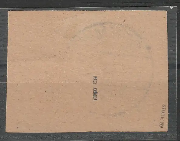 Die Erhaltung ist einwandfrei. Das Briefstück trägt die Prüfzeichen Löbner, Sturm BPP und Prof. Krüger. Herr Kramp hat eine Nachprüfung abgelehnt: "... nicht 100 % sicher". Michelwert 900,00 €