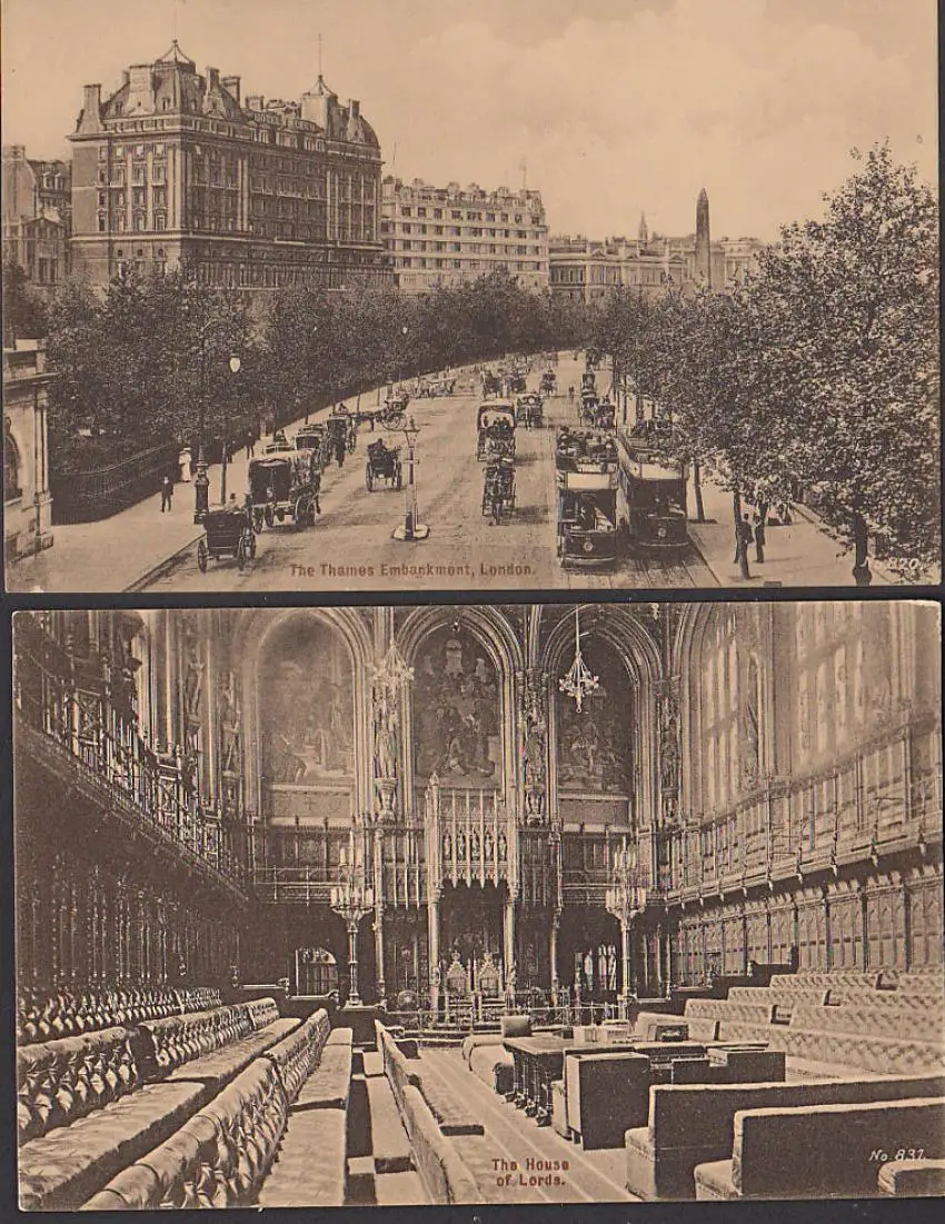 London the Thames Embankment, the house of lords ungebraucht unusedStraßenbahn tram 2 cards