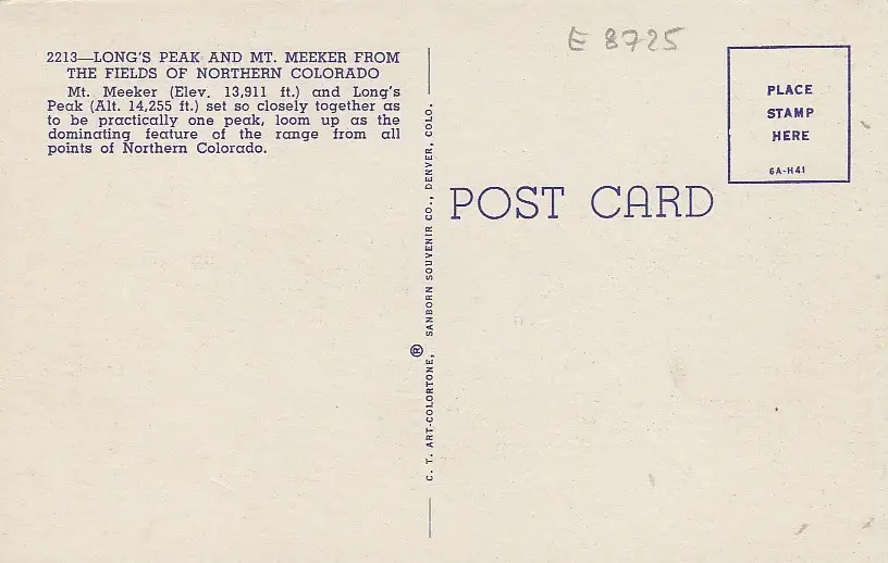 Long's Peak and Mt. Meeker from the fields of north.Colorado ngl E8725