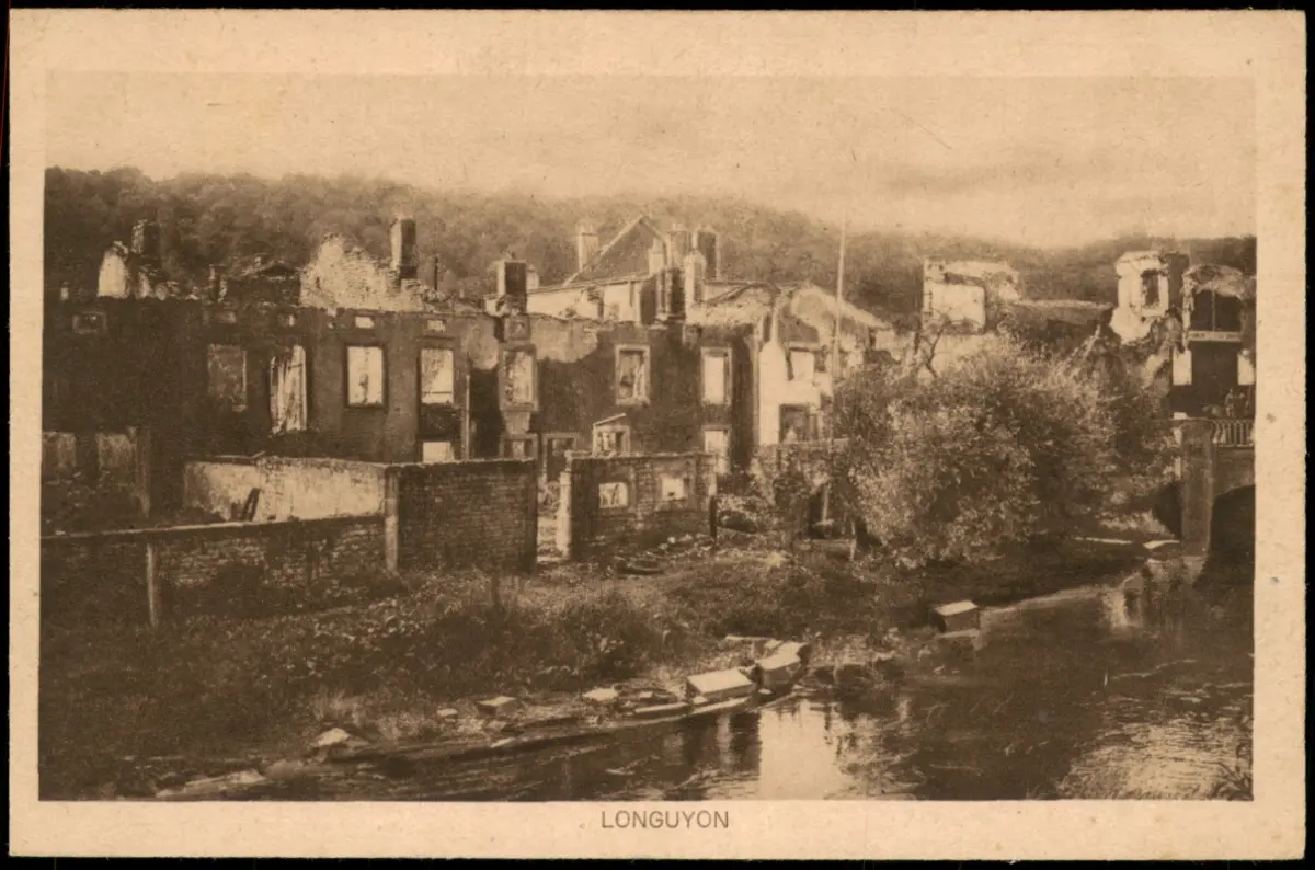 Longuyon Ortsansicht 1. Weltkrieg, zerstörte Häuser, Grande Guerre I. 1917