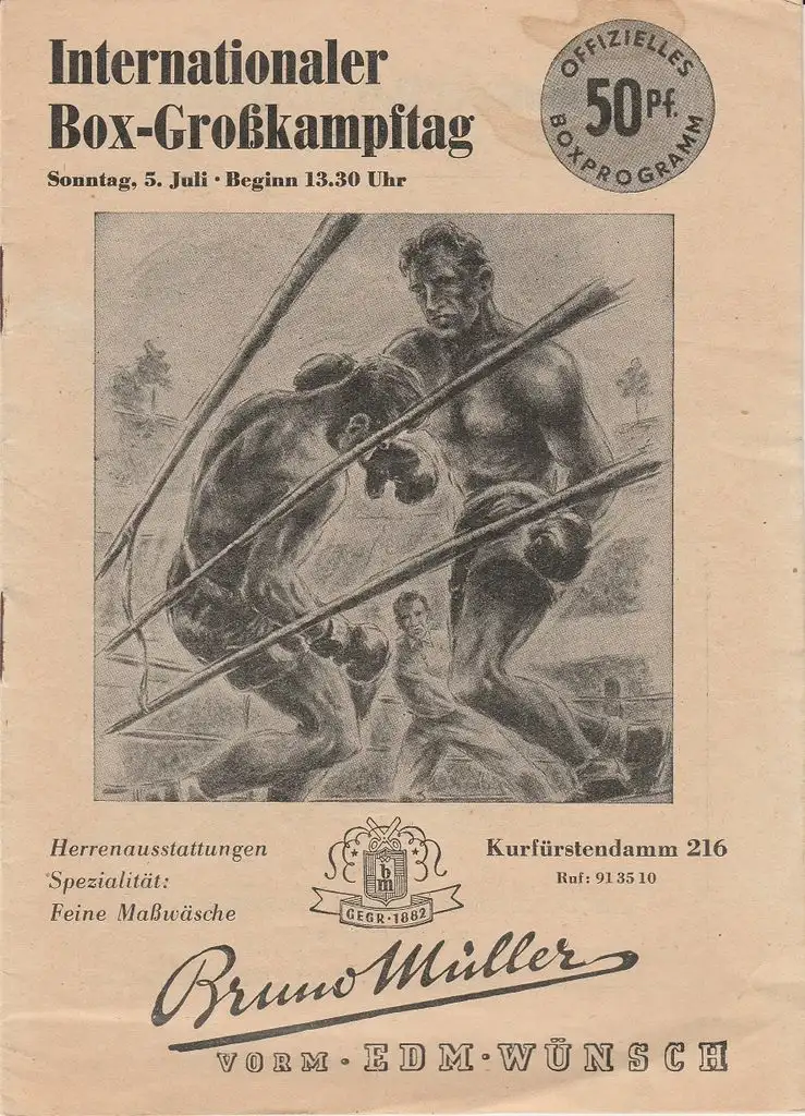 Titel: Programmheft INTERNATIONALER BOX-GROßKAMPFTAG WALDBÜHNE BERLIN 5. Juli 1953
