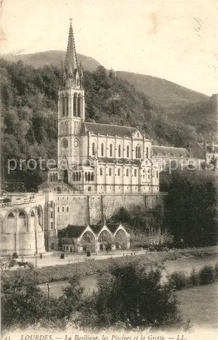Lourdes_Hautes_Pyrenees Basilique Piscines Grotte Lourdes_Hautes_Pyrenees postalisch gelaufen 1907 Erhaltung siehe scans [PaolaD17] PaolPID1