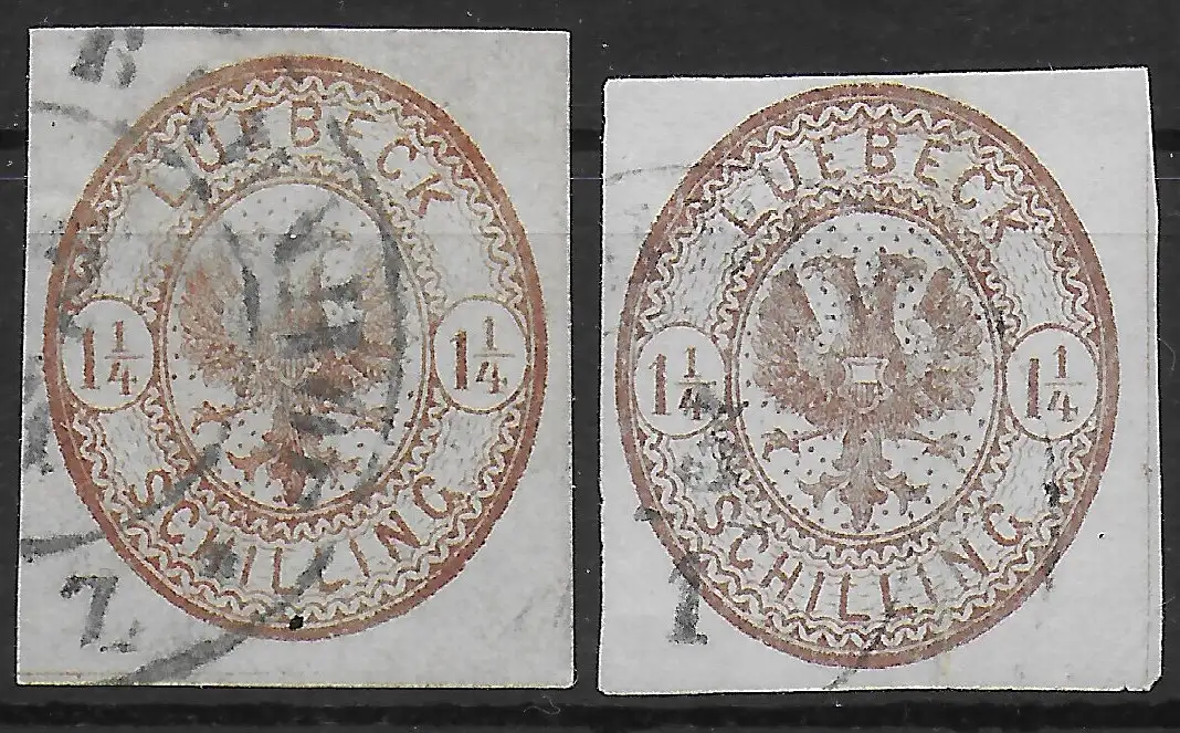 Lübeck: MiNr. 13a+b gestempelt, BPP geprüft, etwas erhöht