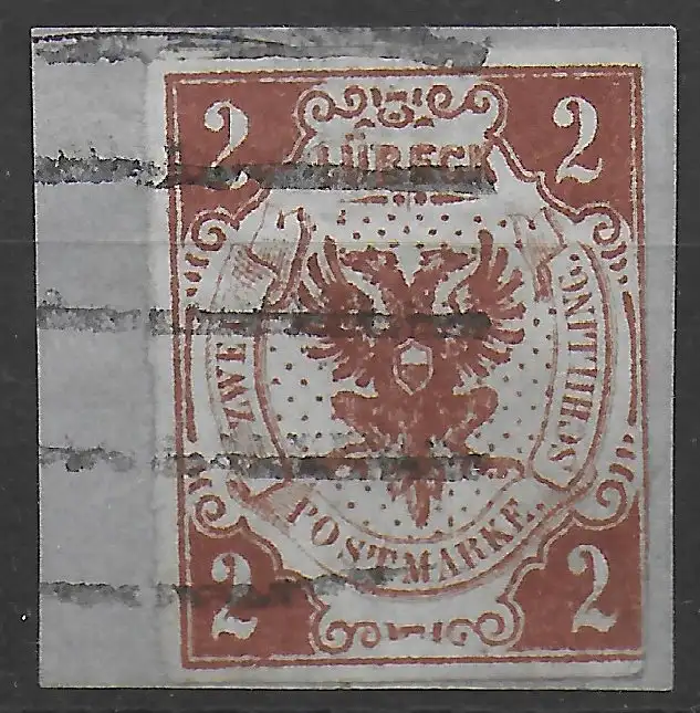 Lübeck: MiNr. 3, Briefstück, geprüft