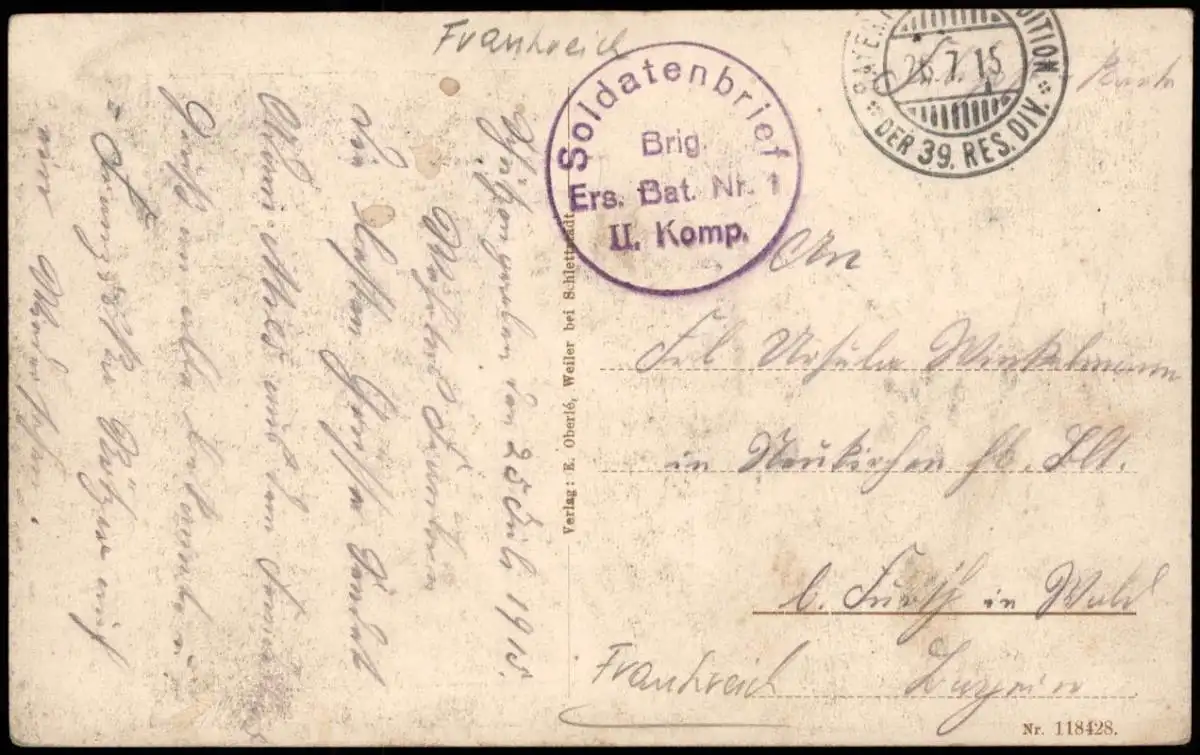 Lützel Vogesen Lusse Vosges Stadtpartie 1915 Feldpost Stempel Soldatenbrief