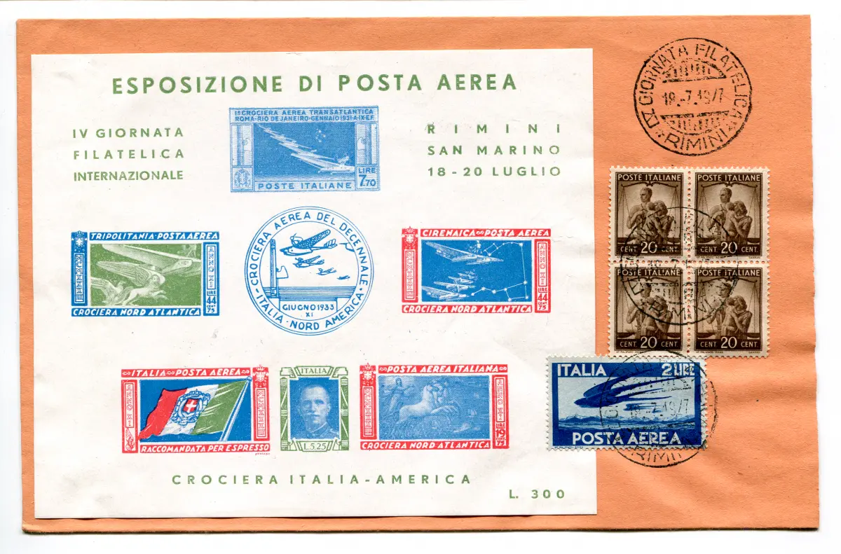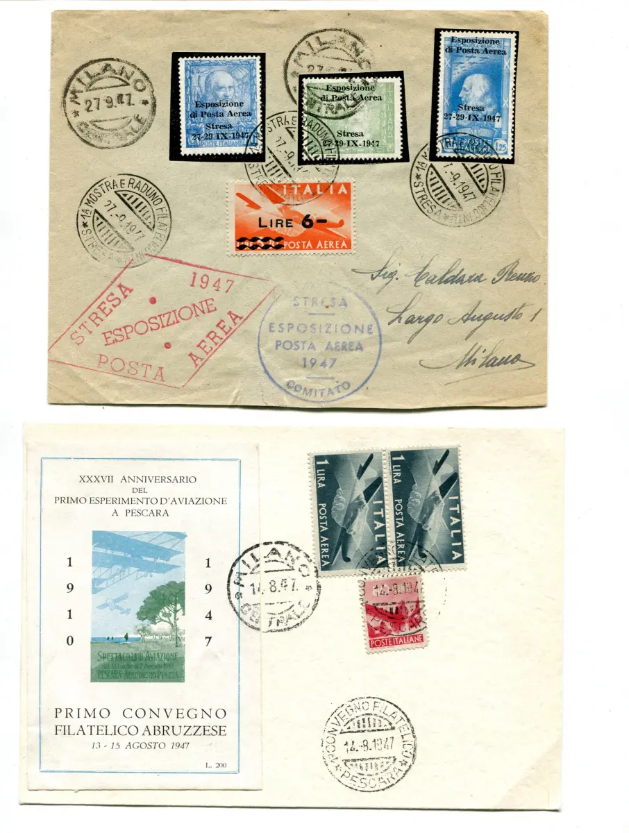 Luftfahrt 1947/1948 - Lot von sechs frankierten Umschlägen mit Erinnofili BUSTA - Luftfahrt 1947/1948 - Lot von sechs frankierten Umschlägen mit erinnophilen Luftpost-Gedenkblättern, die für verschiedene philatelistische Veranstaltungen vorbereitet wurden (Foglietti Landmans) + ein Umschlag mit Erinnofilo von 1948 zur Erinnerung an den I. Flugkreis von Verona - alle Umschläge mit Ann. besondere Veranstaltungen - Schönes Set Cod. 307/16