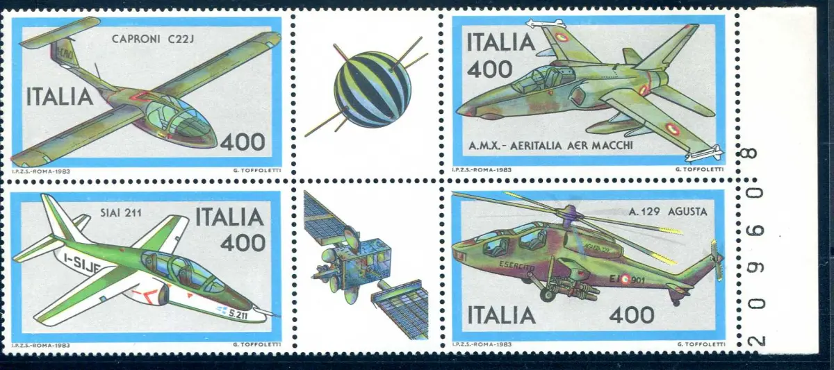 Vollgummi - Luftfahrtkonstruktionen Nr. 1632/1635 die Blockserie mit dem Druck in Schwarz deutlich schwächer als normal, so dass die Schriftzüge grau und der Hintergrund fast weiß sind - Cert. ED Code 794/3