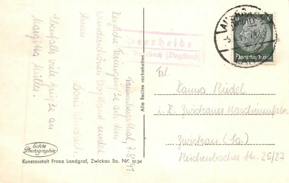 Rückseite: gelaufen 1941