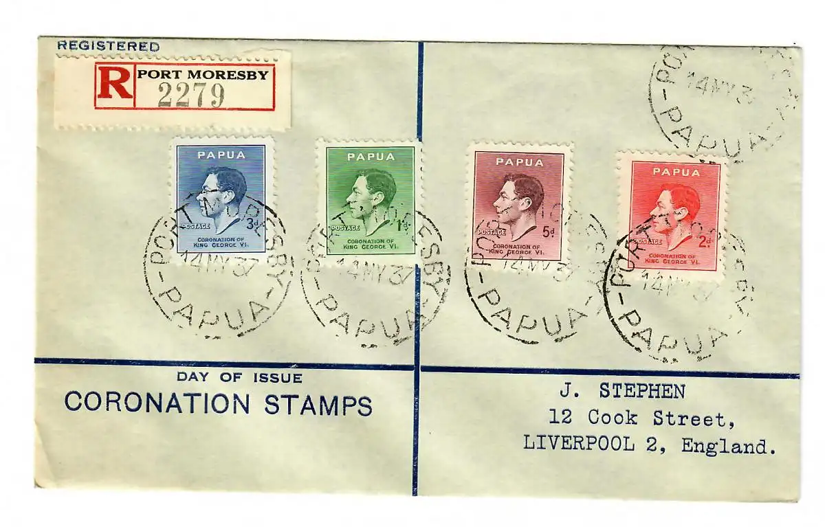 Luftpost Einschreiben Port Moresby nach Liverpool FDC 1937